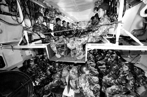 5月13日,空軍某部官兵登機(jī)完畢,準(zhǔn)備起飛 新華社/圖