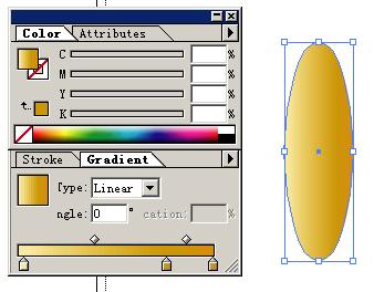 一、先打開ILLUSTRATOR,制作蘆葦。選擇圓形繪圖工具畫橢圓。在Gradient調(diào)色面板中選擇線形(linear)填充,填充的顏色為黃色漸變色。如圖二所示: