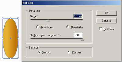 三、對圖形2用Filter/Distort/Zig Zag(選擇Amount:25;Ridges:100;Points:Smooth)制作出蘆葦毛毛整齊節(jié)奏的效果。如圖所示: