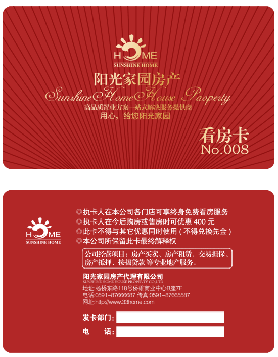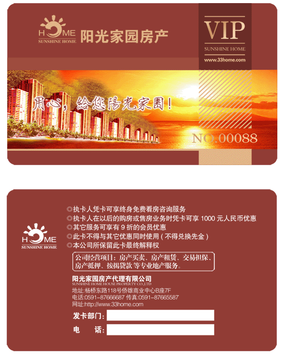 陽光家園房產(chǎn)貴賓卡