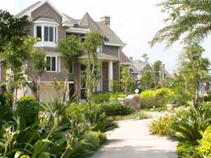 一方面,我們是這樣考慮的。早期我們綜合了專家意見,并吸取了福州其他別墅的經(jīng)驗教訓(xùn)——福州很多私家庭院由業(yè)主自己營造,做得五花八門,容易破壞整個小區(qū)的景觀,不協(xié)調(diào),像個大雜院,就很難營造一種高端別墅的氛圍。