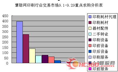 9月份的求購需求中,截止9月29日,印刷器材配件/耗材采購占總量的比例為39%,較前幾月份有所下降,但仍然排在第二、第三位。
