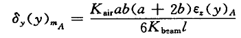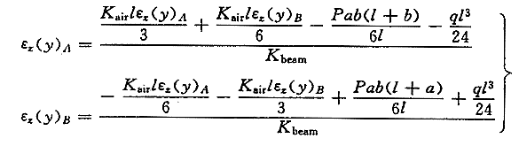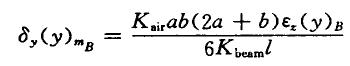 在高速測量中,由于分布質(zhì)量產(chǎn)生的慣性力將使橫梁發(fā)生彎曲變形,而A、B的氣浮導軌也具有一定的剛度,使x-滑架相對于導軌也產(chǎn)生一定的偏轉。這樣,在A、B將有附加的力矩mA、mB作用,橫梁發(fā)生的是復雜變形。