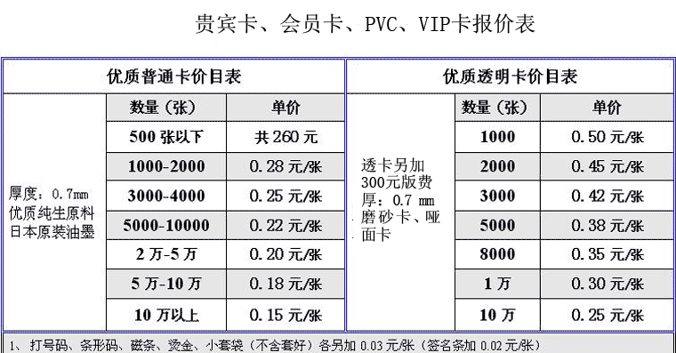 貴賓卡印刷報(bào)價(jià)表、VIP印刷價(jià)目表、會(huì)員卡印刷報(bào)價(jià)、貴賓卡制作印刷報(bào)價(jià)、