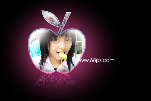 4.打開素材1,拖進(jìn)來放到蘋果的正上方,然后調(diào)出蘋果的選區(qū),執(zhí)行菜單:選擇 > 修改 > 收縮 數(shù)值為3,按Ctrl + Shift + I 反選,按Delete刪除,刪除后不要取消選區(qū),再按Ctrl + Shift + I 反選新建一個(gè)圖層執(zhí)行菜單:編輯 > 描邊 大小為1像素,顏色:#DB4D8E,效果