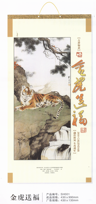 3-SH001金虎送福特度小全開銅板卡紙工藝月歷