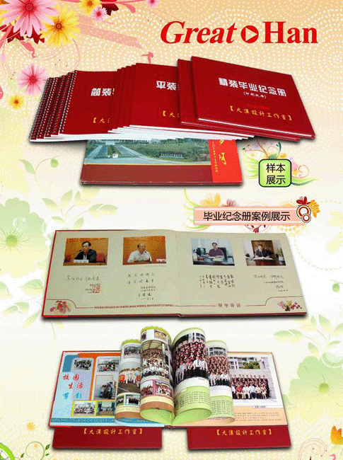 5、容易翻新,由于拍攝日常紀(jì)念照片,不可能做到人手一張底片,而畢業(yè)紀(jì)念畫冊一般都是設(shè)計公司統(tǒng)一制作,只要把設(shè)計底稿刻錄成光碟,以后隨時都可以制作。