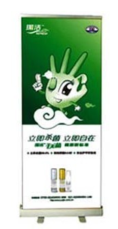 .“易拉寶”又叫易拉得,是做活動時用的一種廣告宣傳品.易拉寶的底部有一個卷筒,內有彈簧,會將整張畫面卷回卷筒內。打開易拉寶的時候,把畫面拉出來,用一根棍子在后面支撐住。故稱其為易拉寶!這些是從形態(tài)上對易拉寶的解釋!易拉寶除了展架外,最主要的部位就是展示畫面了!這個畫面就是商家需要展覽展示的部分,而易拉寶就是一個承載這塊展覽展示畫面的器材。易拉寶材質分鋁合金的,塑鋼的.又有單面和雙面之分.類型很多。易拉寶也是一種宣傳品,它是支架和宣傳面裝在一個盒子里,支架設計成一個暗盒,畫面可伸縮,使用時從盒子里抽出來,撐桿也是放在盒子里的,抽出來,一般是三節(jié),中空,里面有繩子連接著,把它們接在一起就成了一根撐桿,盒子就成了底座,把畫面展開,頂部掛到撐桿頂端即可,不用時,就可以把畫面縮回盒子里,撐桿也收起來,然后放進一個長筒型的袋子里可以帶著走了。說白了,就是簡單易帶的宣傳單,因其是從盒子里拉出來的,使用方便所以美其名曰易拉寶。很多商超、藥店都有,高度一般是兩米左右、寬一米左右,你肯定見過只是不知道名字而已。C.就是在商店門前放著的,原來是卷起來一個筒型的廣告牌,攜帶和實用都比較方面,一種陳列廣告圖片用的架子,通常用不銹鋼做成,輕便利于攜帶。易拉寶的底部有一個卷筒,內有彈簧,會將正張布面卷回卷筒內。打開的時候,把布面拉出來,用一根棍子在后面支撐住。故稱其為易拉寶!耙桌瓕殹笔亲龌顒訒r用的一種廣告宣傳品.易拉寶的底部有一個卷筒,內有彈簧,會將整張畫面卷回卷筒內。打開易拉寶的時候,把畫面拉出來,用一根棍子在后面支撐住。故稱其為易拉寶!這些是從形態(tài)上對易拉寶的解釋!易拉寶除了展架外,最主要的部位就是展示畫面了!這個畫面就是商家需要展覽展示的部分,而易拉寶就是一個承載這塊展覽展示畫面的器材。