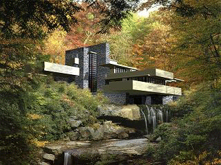 1934年,德裔富商考夫曼在美國賓夕法尼亞州匹茲堡市東南郊的熊跑溪買下一片地產(chǎn)。那里遠(yuǎn)離公路,高崖林立,草木繁盛,溪流潺潺?挤蚵阎ㄖ䦷熧囂卣(qǐng)來考察,請(qǐng)他設(shè)計(jì)一座周末別墅。賴特憑借特有的職業(yè)敏感,知道自己最難得的機(jī)遇到來了。他說熊跑溪的基址給他留下了難忘的印象,尤其是那條涓涓溪水。他要把別墅與流水的音樂感結(jié)合起來,并急切地索要—份標(biāo)有每一塊大石頭和直徑6英寸以上樹木的地形圖。圖紙第二年3月就送來了,但是直到8月,他仍在冥思苦想,賴特在耐心地等待靈感到來的那一瞬間。終于,在9月的一天,賴特急速地在地形圖上勾畫了第一張草圖,別墅已經(jīng)在賴特腦中孕育而出。他描述這個(gè)別墅是“在山溪旁的一個(gè)峭壁的延伸,生存空間靠著幾層平臺(tái)而凌空在溪水之上——一位珍愛著這個(gè)地方的人就在這平臺(tái)上,他沉浸于瀑布的響聲,享受著生活的樂趣!彼麨檫@座別墅取名為“流水”。