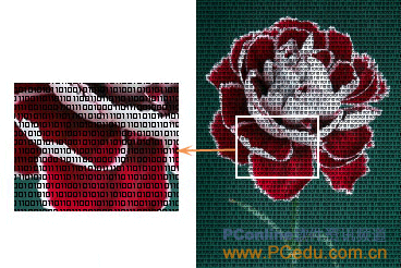 1.首先,我們先來(lái)制作用以填充的圖案。打開(kāi)Photoshop,新建一個(gè)文檔,100×100像素即可,背景為透明。在新文檔的圖層1中,用文本工具拖出一個(gè)大致為正方形的文本框,將文本顏色設(shè)為黑色,設(shè)定好字體屬性后,用0和1填滿(mǎn)文本框。需要的話(huà),打開(kāi)字符屬性欄,調(diào)整行距。