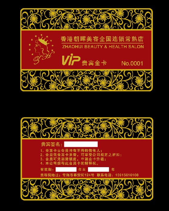 貴賓卡分類 根據(jù)材料可分為:紙卡、PVC卡、PET卡、ABS卡、光卡、金屬卡等 根據(jù)行業(yè)可分為:酒店貴賓卡,服裝貴賓卡,美發(fā)貴賓卡,網(wǎng)吧貴賓卡,校園物業(yè)卡等多個(gè)領(lǐng)域范圍內(nèi)使用。 貴賓金卡、會(huì)員金卡、優(yōu)惠金卡、名片金卡等一系列產(chǎn)品,采用名貴金屬材料及18K、24K真金表面加工,經(jīng)多道傳統(tǒng)工藝及現(xiàn)代化先進(jìn)技術(shù)精制而成。貴賓卡有金屬貴賓卡和非金屬貴賓卡之分。