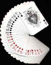 這是一種表演背面圖案變化的撲克,用不同的方法把撲克背面打開,會變幻出不同的圖案,撲克正面也可變化出普通牌面及白板兩種圖案。這種撲克據(jù)說有特殊的涂層,任何一個人,無需進行專門的訓練,就可把牌順利地打開,牌與牌之間的間隔均勻,半圓弧上基本沒有缺口,就像一個熟練的魔術師。