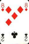 這是一款法國(guó)產(chǎn)的專業(yè)魔術(shù)撲克,盒中包括兩副撲克,其中一副是普通撲克,背圖如16號(hào)牌。另外一副是魔術(shù)道具撲克,其中除了部分普通撲克外,其它都是經(jīng)過改裝的撲克,如下圖。