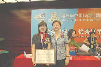 文博會結束后,深圳市副市長閆小培與海德堡公司代表劉曉萍在頒獎儀式上合影