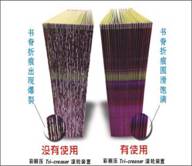 特麗寶到底是什么,這個(gè)系統(tǒng)是如何使用的?這是許多客戶的相同問題?很簡單:所用的書刊裝訂廠都有原來的書面壓痕系統(tǒng),但這些系統(tǒng)一定是鐵壓鐵的滾輪系統(tǒng), 壓痕的結(jié)果除了過膠的書皮紙外, 其它都會(huì)出現(xiàn)不同程度的 爆色(如圖1)現(xiàn)象 。和傳統(tǒng)的書脊壓痕系統(tǒng)不同,特麗寶采用了【膠壓鐵】原理來壓痕,避免使用傳統(tǒng)的【鐵壓鐵】方法,減輕過大壓力,從而解決爆色的問題。